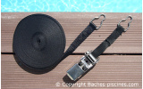 Ensuite, il y a la bâche hiver qui est une couverture piscine un peu plus onéreuse. Ses fixations diffèrent selon la vos plages et de vos terrasses bois ou sol carrelé. Il existe pour les couvertures d’hivernage des options spécifiques pour le gazon mais aussi des attaches particulières pour les piscines en hors sol. Des crochets murets pour les piscines bois ou du sandow spécifique pour la piscine autoportée. Le piton crosse avec sandow est le standard en terme de fixation pour la bâche hiver opaque. Les couvertures d’hiver piscines sont résistantes dans le temps et la qualité du PVC en 500g/m² protègera votre bassin tout l’hiver. Votre piscine restera propre et sans feuilles au fond du bassin. Terminé les ennuis, plus besoin d’enlever les tâches sur votre liner ou votre coque de piscine. De plus, la remise en service aux beaux jours sera plus facile et le nettoyage de la piscine plus rapide. La bâche hivernage opaque PVC empêchera la lumière de passer. De ce fait, vous n’aurez pratiquement plus d’algues dans votre piscine. Ces couvertures piscine dépassent du bassin et reposent sur les margelles. Par conséquent et sous certaines conditions, ces bâches d’hivernage répondent à la norme de sécurité piscine NFP 90-308. Leur fonction est d’empêcher l’accès du bassin à un enfant de moins de 5 ans. Les filets pour piscine sont généralement utilisés pour les grands bassins car olus faciles à manipuler. Ces couvertures filets sont aussi très souvent posés sur des bassins avec un volet piscine pour protéger le rideau pendant l'hiver.