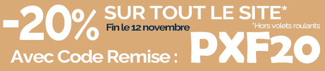 Code remise 20% * : PXF20 valable jusqu'au 12 novembre 2025. Non rétroactif après vos achats. *Ce code est valable sur les tous produits hors volets roulants et hors frais de port.